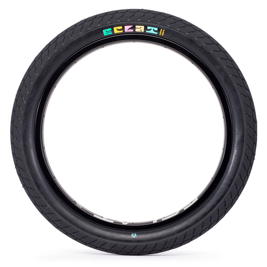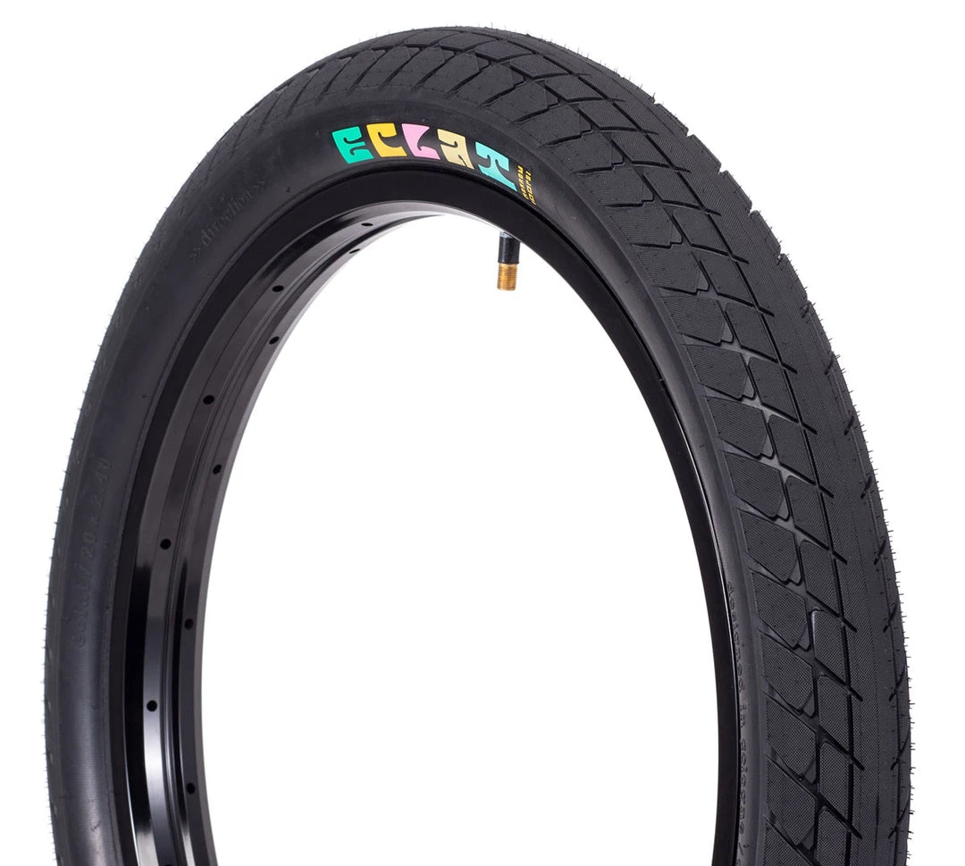 Not just your standard ‘street’ tire, the Eclat Morrow tire provides a much grippier tread that can hold onto the any surface.. You could definitely see this tire in any bowl or set of trails with no problem.