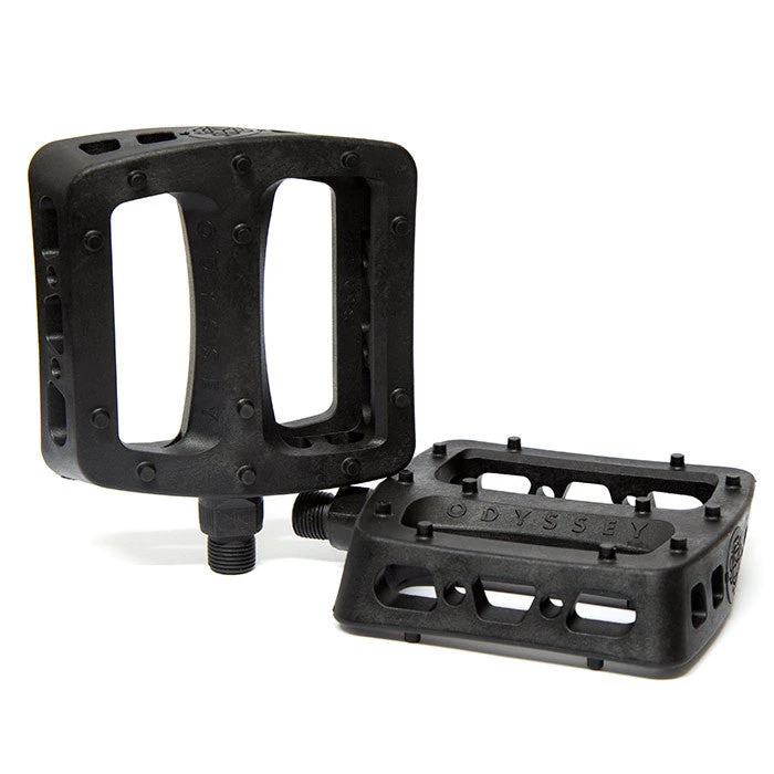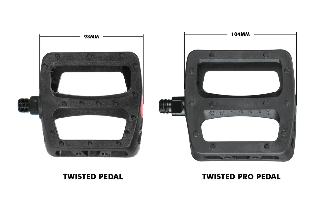The Odyssey Twisted Pro Pedals have theย original Twisted shape, style and look, but offers a bigger platform and slimmer profile. If you love the Twisted but wish they had a little more standing platform, the Twisted Pro is for you.
