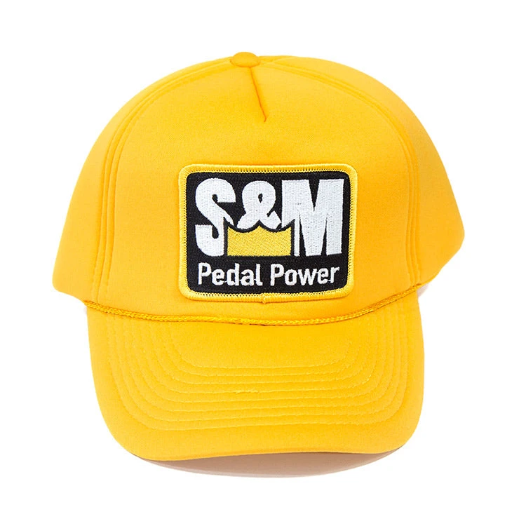 S&M moving the earth with these ripping pedal power trucker hats in gold.